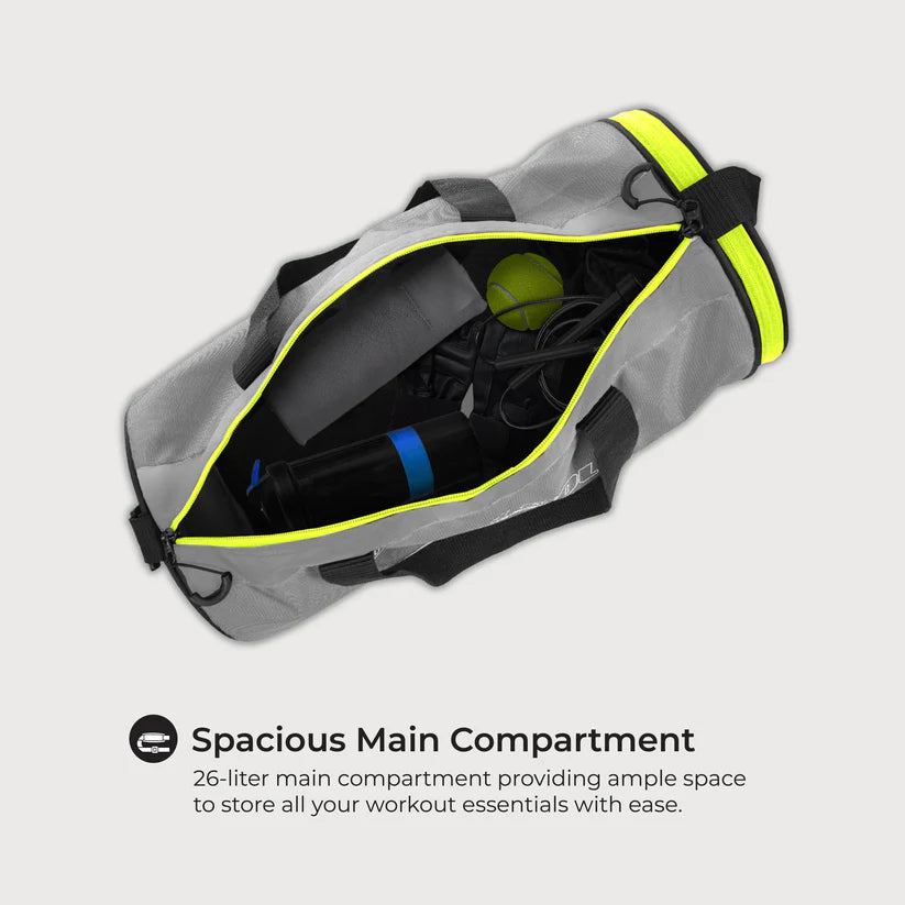 26L Gym Duffle Bag | Unisex Grey & Green Zipper | Separate Shoe Compartment | Quick Access Pocket | Durable Polyester | Multi-Functional Sports & Travel Bag | Dimensions 49x23x23 cm