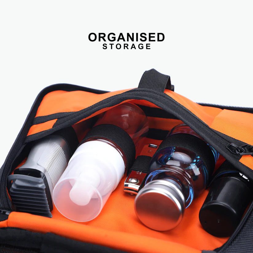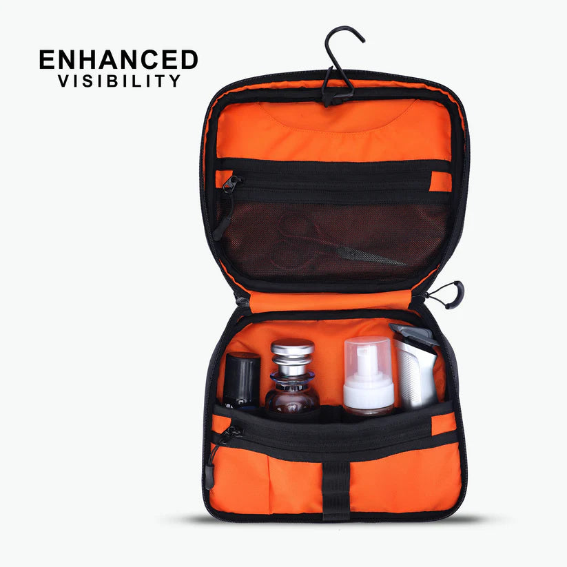 Enhanced Visibility: Featuring an orange interior lining, our travel toiletry organizer offers improved visibility, making it easier to locate your items, even in low-light conditions.